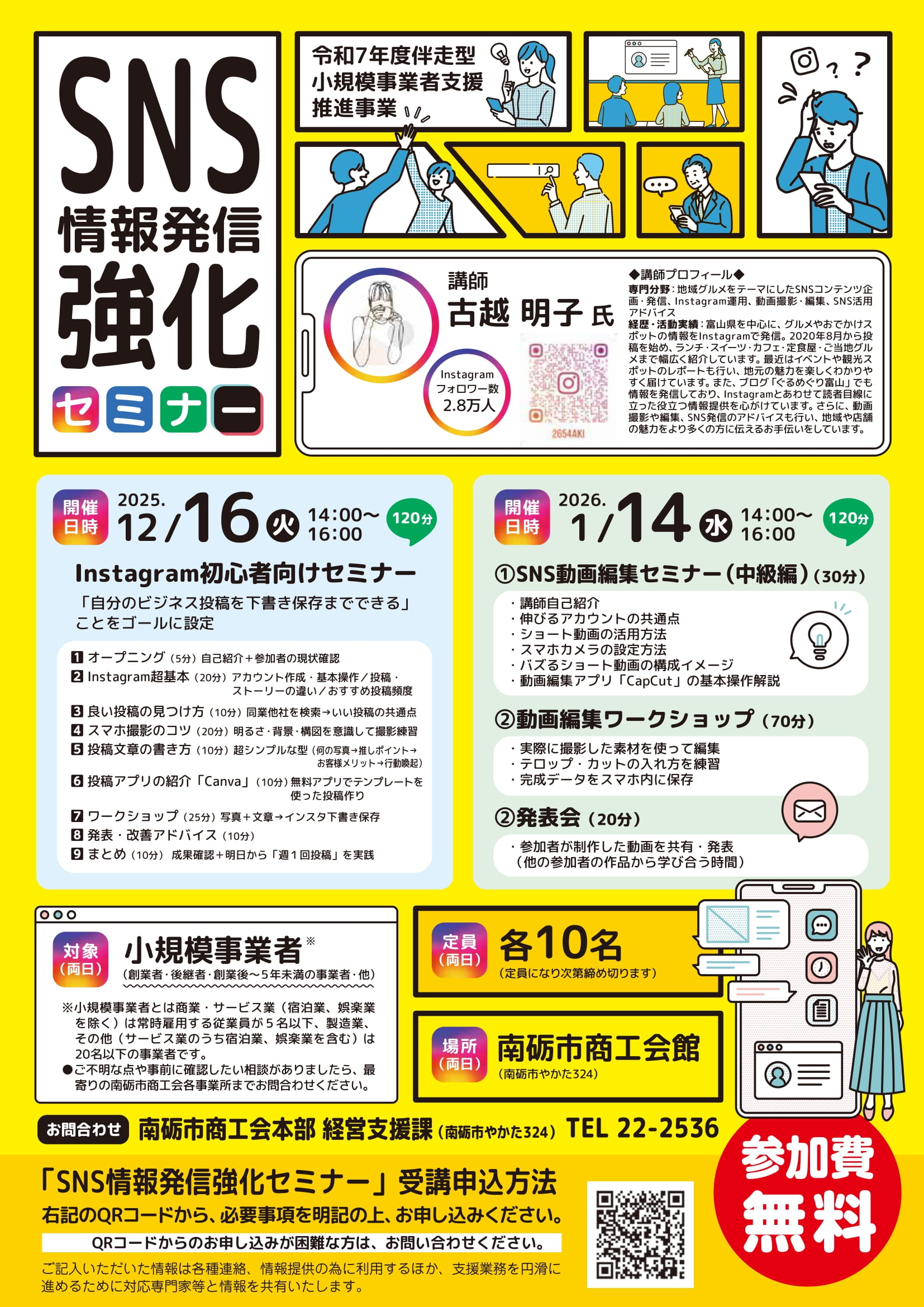 南砺市商工会では、小規模事業者のみなさまのSNS活用を応援する