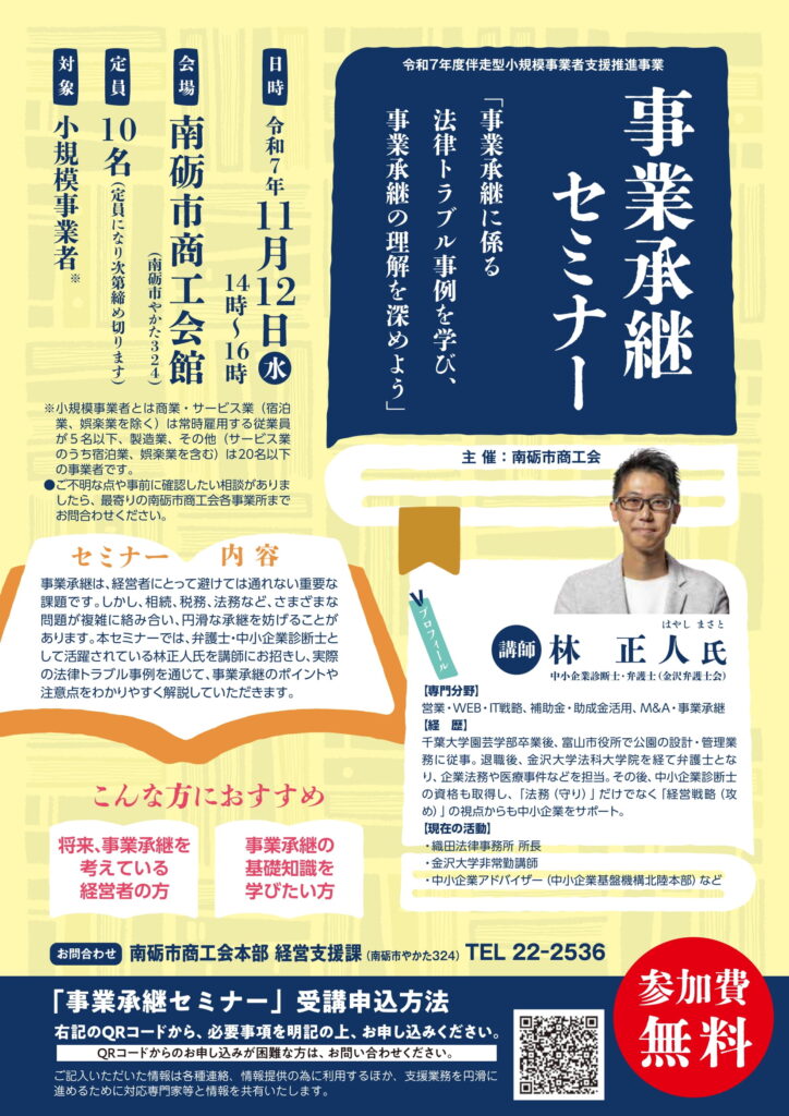 事業承継セミナー開催 ― 法律トラブル事例から学ぶ ―